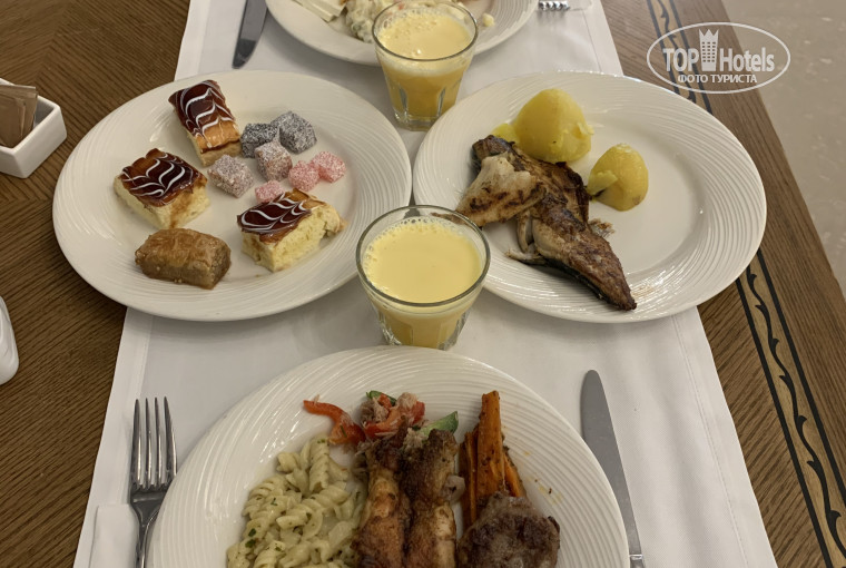 Приехали мы 06.04 в 9:30, заселились в 11 часов , перед этим хорошо позавтракали в основном ресторане . Еды изобилие , вкусно приготовленная и самые волшебные десерты 🍮. Персонал приветливый, получали несколько раз комплименты от отеля и туроператора (шампанское , завтрак в номер, лебеди и т.д.)