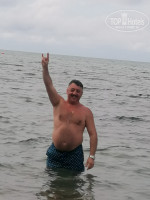 Вход в море - мелкая галька, заход плавный, отделённая детская зона. Вода в конце мая была прохладной +17.