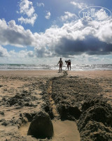 Никакого частного пляжа у отеля нет. Выходишь через лужу за территорию, переходишь дорогу, шлепаешь между заборами метров 300, и вот потооооом пляж. Он в свободном доступе для всех жителей города. Но никто не приходит, потому что там просто песок. )) Лежаки притащили стопкой на второй день, и скрепили стопку замком. Так бы они и стояли, пока совсем задолбавшиеся ждать туристы сами не решили вопрос, и на растащили эту стопку. Работники отеля так и не явились не раз к морю. Никаких зонтиков, навесов, ТУАЛЕТА(!) - ничего. Зато море правда чистое и очень красивое, тут вопросов нет. ) Как и заслуги отеля.