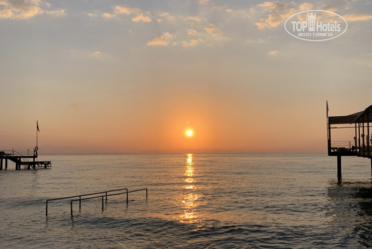 Пляж. Не смотря на бюджетность у отеля есть свой пляж с бесплатными лежаками и матрасиками. К пляжу идти минут 5. Выйти с отеля повернуть направо. Идти до отеля Ring Beach (там кстати есть банкоматы, где можно без проблем снять деньги с карты). Возле отеля Ring Beach повернуть налево, дойти до упора и повернуть направо, зайти в ворота кемпинга, пройти сквозь территорию кемпинга и спустится по ступенькам на пляж. Пляж маленький и как знаю, принадлежит нескольким отелям. С утра не всегда хватает всем места +народ часто занимает лежаки своими вещами и уходит. Лежаки размещены очень плотно друг с другом. Вообще не комфортно. Есть зонтики и накрытие от солнца. Вход в море - крупная галька, иногда достаточно острая. Дно моря в крупных валунах. Камни покрыты какой-то слизью, босыми ногами не очень приятно касаться. Рекомендую брать с собой тапки-коралки. Есть пандус для входа в море. Удобно. Плюх и сразу плывешь. На пляже есть переодевалка и "бар" от отеля - где можно взять обычную воду - в свою тару. На территории кемпинга есть магазинчик, где можно купить апельсиновый фреш, мороженное, лепешки. Море в начале июня волшебное - теплое.