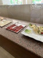 Питание. Ассортимент не большой, но я не скажу, что питание плохое. Из "мясного" это только курица. Были разово: печенка, котлетки из сои, нагетсы из серой субстанции внутри. Несколько раз была рыба. Из гарниров: картошка, макароны, каша. Большой выбор зелени, овощи, вкуснейшие помидоры черри. Очень вкусный белый свежий хлеб. Были супы. Из фруктов: апельсины, яблоки, арбуз, дыня. Очень понравились жаренные баклажаны и кабачки. На обед и ужин есть сладости, на вкус практически все одинаково. Колбасу не пробовали. Еда в основном вкусная, простая, без изысков. Ни разу не было расстройств или отравлений. Ни разу не остались голодными. Взрослому насытится можно без проблем, но вот на мой взгляд для детей сложновато будет выбрать еду, особенно для маленьких. В столовке столиков много, есть внутри и на улице. Из алкоголя пробовали только вино, на любителя. Есть аппарат для приготовления кофе, мы ограничивались только чаем.