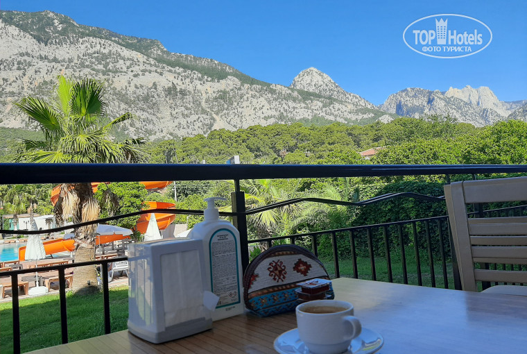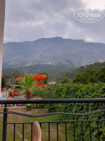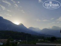 Отель расположен среди прекрасного вида на горы , чем и подкупил при выборе , территория чистая .