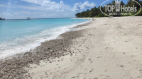 Пляж. Вот тут было самое большое опасение. Мы начитались, что пляж и лагуну перед номерами 101-178 совсем испортили, боялись туда селиться. Ну что ж - действительно испортили :) Причины понятные - остров сильно подмывает с северной стороны, берег периодически приходится укреплять и подсыпать. Вот его и подсыпали - вместо узкого приятного песчаного пляжа теперь широченный, метров эдак 70, наверное. Сначала (если двигаться от бунгало к океану) идет мелкий песочек, несколько метров, потом полоса несколько десятков метров из плотно утрамбованного грубого песка с кусками кораллов - идти по нему можно, но очень неприятно, потом опять мелкий хороший песок, метров 7-10 и склон к воде. А вот на границе с водой и внутри воды реальный ужас - огромные куски кораллов, очень напоминает перемолотые скелеты с черепами :) Когда эти кораллы волна долбит по ногам, очень ощутимо и иногда даже больно. Заход в воду и первые метров 10 под водой (дальше песок) без специальной коралловой обуви просто невозможны. Поэтому обязательно берите ее с собой (стоит около 1000 рублей в спортивных магазинах). Или не селитесь в 101-178. С другой стороны от главного ресторана, в 179 и дальше, пока (пока!) не подсыпали, там можно покупаться без тапочек. Но учитывая, как там тоже все размывает, боюсь, что и эту часть скоро могут реновировать. Наблюдение: видно, что сначала работали с пляжем перед номерами 101-148, и где-то через полгода - с 149-170. Разница вот в чем: перед 101-148 вот эта полоса утрамбованного песка уже чуть улучшилась - либо убирали вручную самые большие куски кораллов, либо естественным путем все слегка сгладилось. И на этой полосе уже появились какие-то растения. Пока небольшие, но явно будут расти :) Перед 149-170 все хуже. После 170 и до 178 зона подсыпания плавно сходит на нет, можно, наверное, живущим в этих номерах пробовать купаться без тапочек, но не уверен.