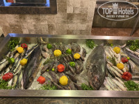-не понравилось, что ежедневно приготовленные куски курицы и рыбы были в кляре :( частенько можно было успеть хватануть кольца кальмара на ужин (тоже в кляре правда)