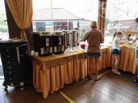 Скидки на рецепшен не делают, так что у туроператоров получается дешевле. В общем конечно я в Турции в 4 звезды бы не поехал, а здесь все даже очень ничего выглядит, не новый конечно, но в пределах допустимого. Интернет вай фай по всему отелю работает нормально, полотенец комплект, халаты, тапочки и зубные щетки присутствуют. На завтрак народу много, все бегают, еды тоже достаточно, клубника и персики вишня... ну в общем как должно было быть, все достаточно вкусно. Так что даже при плохой погоде все ОК. Самое главное отель находиться прямо в центре Евпатории!!!! Все парки и развлечения рядом, до пляжа 5 мин пешком,