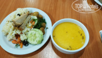 Ресторан и еда! Здесь реально очень вкусно! Нам действительно понравилась еда! НО!!! Ресторан маленький, явно не расчитанный на такое количество отдыхающих, периодически мест не хватало. Есть терраса и опять, чисто организационный вопрос. Над террасой натянуты тенты, натянуты и придуманы они мягко говоря через жопу. От дождя не защищают, от солнца тоже, много щелей. Часть столиков расположена вдоль перил, как бы у бассейна. В итоге эти столы получается расположенные полностью под открытым солнцем. Сиденья и сам стол раскаляются до такой степени, что если не подложить что-то на сиденье, можно реально поймать ожог. Да и в целом время обеда 12 30- 14 30, согласитесь есть в это время на открытом солнце удовольствие паршивенькое! Естественно, эти столы всегда в обед пустуют... Т.е как бы места есть, а по факту нет =)