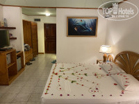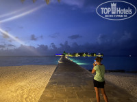 Отдыхали с дочерью-подростком 13 лет, 2 недели с 19 июня по 3 июля 2021. Остались в полном восторге. Негативные отзывы вызывают недоумение. Как можно остаться недовольным, отдыхая в таком райском месте, выше моего понимания. Очень переживала за погоду, лето ведь считается что несезон. При нас сильные дожди были только ночью, днём пару раз чуть капало, но это были редкие капли, максимум на 5-7 минут. Часто было облачно, но во-первых, облачность была переменной: набежали облака, через полчаса рассеялись, спустя время опять набежали- через 15 минут рассеялись. Облачность-это даже хорошо, постоянное жаркое солнце ведь сильно утомляет. И во время облачности спокойно можно купаться, не холодно совсем. Вообще, тем кто любит прохладное, освежающее море-не сюда. Температура воды с утра была градусов 25-26, а после обеда-28-29. Слишком сильной жары нет, температура днём 30-31 градус в тени, ночью 27. Для меня такое сочетание температур воздуха и воды-блаженство.На Средиземном море-в Турции или на Кипре, если море прогрелось до 28-29, значит, воздух днём градусов 40. Это совсем не айс для самочувствия. Расскажу подробно, как летели, лично меня этот вопрос очень интересовал перед вылетом. Летели из Москвы чартерным прямым рейсом Азур Эйр от Анекс тура. Вылет вовремя. Очень комфортный самолёт, места для ног достаточно, давали пледы, беруши,маски для сна,надувные подушки для шеи, наушники. Только вот питание скудное, кормили 1 раз и порция была крошечной. Прилетели в 11 утра по местному времени, около 45 минут заняло прохождение таможни и получение багажа. Потом представитель Анекса сказал нам номер стойки, там нас отметили, бирку на сумку прицепили, но на этой сумке было только название отеля, номера комнаты не было. После этого просто махнули в сторону, мы отошли к куче людей, которые собирались в другой отель, как позже выяснилось. Минут через 10 человек со стойки выкрикнул название отеля, собрал людей в кучу и повёл нас к стойке регистрации на внутренний рейс. Был уже полдень, на посадочных талонах,которые нам выдали, время вылета было 12.05, в итоге ждали вылета час, в 13.00 вылетели, в 13.20 прибыли. В полёте давали конфетки. Самолёт маленький, 18 рядов. После того как прилетели, на автобусе отвезли на пристань. Ждать катера пришлось долго, около 40 минут. Плыли минут 10, всем дали по бутылке воды маленькой. В отель прибыли в третьем часу, время обеда кончилось, но всех покормили в ресторане. Столик нам достался очень хороший, с видом на море, можно сказать, оттуда, где мы сидели, можно сразу было выйти на пляж. Ресторан очень большой, кто сидел в середине зала, или с другой стороны, где только начинались столы, наверняка было не так приятно. После обеда начали расселять, нам предложили бесплатно на 3 ночи поселиться в вилле на воде, но я отказалась по причине лени. Лень было тратить время на переезд из номера в номер. И в отзывах я начиталась, что там не очень. Изначально у нас был суперриор забронирован. Из-за моего отказа, пришлось ждать номер дольше всех, минут 30. Как я поняла, нам не хотели давать номер 239, эти номера считаются «плохими» из-за того, что нет прямого выхода на пляж. Девушка на ресепшн, Вира(её именно так зовут, не Вера) была уверена, что мы всё равно будем просить другой номер, но она ошибалась. По мне, номера 235-248 самые лучшие по расположению. Они самые ближние к пляжу, где водные виды сп