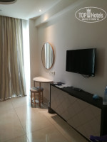 5) Симпатичные уютные чистые и свежие номера (по крайней мере наш был именно такой). Изголовье кровати выполнено до потолка и очень эффектно смотрится. Сама кровать очень удобная - высокая, широкая с очень удобным матрасом. В номере в принципе, всё необходимое есть, если работает - кровать, шкафы, холодильник, кресло, столик, столик-трюмо с зеркалом, настенный шкаф-комод, телевизор, фен, посуда, вешалки, гигиенические принадлежности. На полу кафель, но скользко. Система кондиционирования встроенная, исправная, мощная.