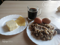 Столовая - мы были на завтраках. Каша молочная сладкая, хлопья, омлет/яйцо, молоко, сыр, сосиска/ветчина, творог/запеканка, чай, кофе, йогурт, выпечка. Вкусно. У меня диабет, мне готовили отдельно, надо только попросить повара.