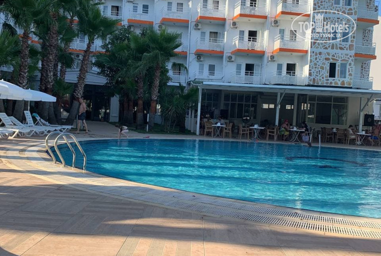 Отдыхали в данном отеле в средине июля 2021. Подойдет для бюджетного отдыха. Отель еще на стадии ремонта, очень много недоработок. В номере в который нас поселили очень пахло краской, была дыра в стене ванной комнаты и унитаз на который страшно было садится, поэтому попросили его сменить. На рецепции нам не отказали и мы переехали в более уютный номер с видом на мандариновую рощу. Все комнаты выкрашены в белый цвет, есть все необходимое. Платный вай-фай по всей торритории отеля (хотелось бы что б в лобби была точка для бесплатного подключения), вы можете заплатить 4 евро за 1 день пользования или же ходить искать бесплатные доступные сети соседних отелей. Телевизор есть но толком не работает, поэтому в обед пока палит солнце заняться в принципе в номере нечем. Сама территория отеля не большая, но там зелено и красивый вид на горы. Есть два бассейна, две горки и лежаки. Басейны очень мелкие и маленькие, в основном там целый день сидят дети. Из анимации была только водная аеробика, есть настольный теннис и дартс. Так же вечером была небольшая дискотека с русской музыкой, на которую в основном тоже ходили дети. Кухня открытая, можно видеть как готовят еду, но разнообразия по еде не ожидайте. В основном на обед и ужин с гарниров были каши (рис,булгур) или макароны (если на обед были макороны обычные, то вечером вам их подадут запеченнными под сыром), салаты тоже без особого разнообразия, мясо было в основном виде полуфабрикатов (очень невкусных) или же филе курицы/индейки. На завтрак в основном яйца/омлеты и колбаса/сосиски, было несколько видов сыра. С фруктов только арбуз, дыня и редко были сливы. Сладостей не было вообще. Но в определенное время выдавали мороженнное. Что касаается бара то большого ассортимента напитков тоже не было. Соки брать я бы не рекомендовала, так как это сироп+газировка. Вино ужасное из пакета. К пляжу пройтись буквально 3-5 минут от отеля, но пляж не ухоженный, там редко убирают, половина лежаков сломаны. Тем более пляж был на две гостинницы. Полотенца выдают под депозит 10 долларов. Советую приходить на пляж до 9-ти утра чтобы занять место. На пляже соседней гостинницы есть понтон и пирс для комфортного захода в море. Если не планируете на него ходить, то советую приобрести специальные тапочки, так как заход в море не комфортен. Само море чистое и теплое. Вдоль улицы на которой находится гостинница есть куча небольших магазинчиков. Персонал доброжелательный, русскоговорящий. Уборка в номере по графику, нужно записываться у администратора на рецепции чтобы вашу комнату внесли в список, обычно раз в три дня. От аеропорта до гостинницы ехать минут 40-1 час. Но это не 4*, а средняя троечка.
