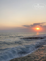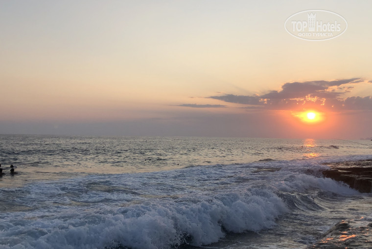 Я брала горящую путёвку, поэтому не ждала шикарного отеля и разнообразия еды. Я ждала моря, но как оказалось, в него попасть не так то просто. Пляж из галтели с песком, а вот вход в море: один камень с скользким мхом с резким спуском в воду (сделан в виде бассейна). Одно дело туда спуститься, другое — не ударится об камни пока идёт волна. Я видела как царапают спину себе до крови люди, падают дети. Лучше с детьми туда даже не пытаться заходить.