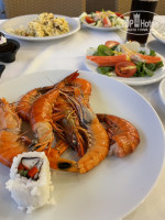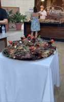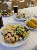 Начнём с еды о которой было много плохих отзывов. Ее было много и она была вкусная! Очередей не было(ну по крайне мере не больше, чем до пандемии). Порции накладывали очень большие. Мне как девочка 3 больших куска куриного филе- это очень много и так они кладут за раз, без просьбы добавки. Но если она вам нужна-то никогда не откажут, можете не переживать, голодными не останетесь. Кроме обычной еды у них были тематически к ужины(японский, мясной, рыбный) можете увидеть на фото.