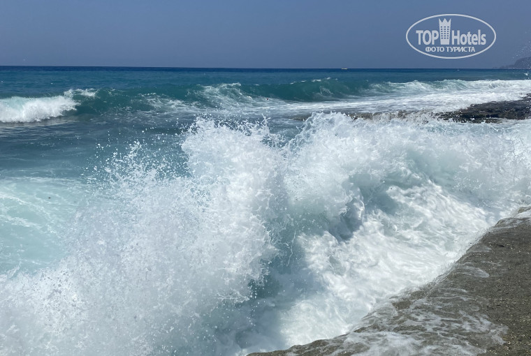 Море близко, через подземный переход, песок горячий, шезлонги, зонтики, душ , кабинка-всё есть. Море большую часть отдыха было не спокойное, за счёт того, что в этой местности плиты-были сильные волны, но мы все равно купались… но поплавать было не реально.