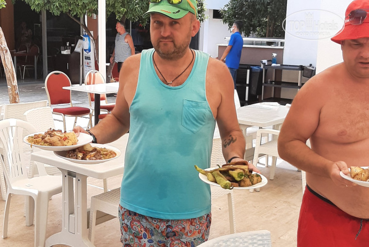 Отдыхали с друзьями, всё понравилось, номера обычные чисто всё необходимое есть, полотенца, гели и шампуни были, фен, кондер, холодильник всё работало))) еды было полно всякой , рыба ,мясо, курица каждый день, очень много сладостей, из фруктов яблоки , арбузы, дыни))отдых прошёл на ура))))