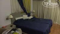 В номере кондей работает только при закрытом балконе, телевизор (есть первый канал) сдвоенная кровать, 2 столика, холодильник с наклейкой "платный 2 евро в день", но мы пользовали и не платили).