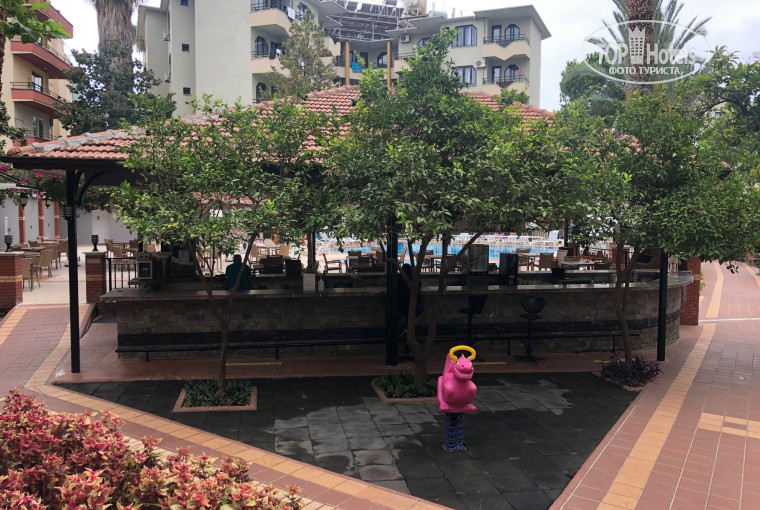 На территории большой бассейн с достаточным количеством лежаков, возле бассейна есть бар, что очень удобно. Номер нам достался уютный и светлей. Кормили вкусно, особенно обед и ужин были достаточно разнообразными, на завтрак было, в основном, одно и тоже, но вкусно. Персонал приветливый, готовы помочь, но есть одна трудность, для тех кто не говорит по английски или турецки, на русском обслуживающий персонал не понимает, только несколько общих слов ( в столовой, в баре и на ресепшн), но это не мешает всегда помочь или найти выход из положения.