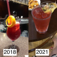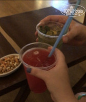 Напитки очень разбавленные, еле подкрашенная водичка (посмотрите сравнение на фото). В лобби баре (!!) дали коктейли в пластиковых стаканах (!). Сок на завтраке химозный и разбавленный.