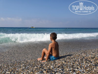 Пляж песчано-галечный. Вход в море некрупная галька. Начитавшись отзывов брала ребенку коралки, они не понадобились, и туристов в коралках было немного. Заход вполне комфортный. На пляже много лежаков. Море было очень теплое и чистое, выходить из него не хотелось вообще. Первые три дня спокойное, потом были волны. Но тут уже, как кому повезет. Отдельно хочу выразить благодарность спасателю, который достал из моря наши очки)) И спасатель в этом отеле действительно выполняет свою работу, а не просто присутствует для галочки.