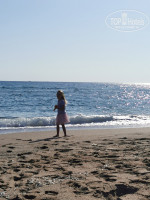 Пляж-песчаный, вход с начала мелкие камушки дальше песок. Долго не глубоко, для детей самое прекрасное. В воде есть пару камней, но их видно вода програчная, мы не поранились.