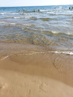 На пляже работает бар, в котором есть прохладительные напитки и пиво. С утра можно попить чай и перекусить печеньками, с 11 часов пекут лепешки, а с 12-00 можно подкрепиться и не ходить на обед в отель.