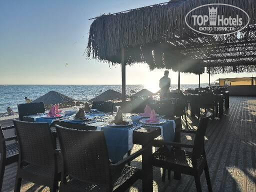 Теперь питание... Свининки, конечно, не хватало😁 Ну это специфика всех турецких отелей. Да и еда в целом специфическая, но всё приготовлено достаточно вкусно и разнообразно. Настолько, что, по моему мнению, голодным из ресторана уйти очень сложно. Курица, индейка, баранина, говядина... И всё это в различных вариациях😊 Для полуночников в ресторане есть функция "ночной суп". Это когда днём не хватило или проспал, то приходишь в 12 ночи и ешь😂 Очень поразило количество различных десертов и сладостей. Даже не всё попробовали😔 за 10 то дней... Один раз за заезд ты получаешь приглашение в ресторан А-ля-карт на берегу моря. Романтика, на закате, под бутылочку белого сухого под приятную музыку... Очень достойно и разнообразно накормили морепродуктами👍 За питание также 5!