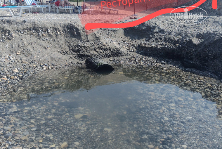 В 10 метрах справа от бара в море что-то вытекает из трубы. По запаху - канализация. Запах регулярно распространяется по пляжу.