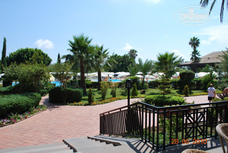 Отдыхали с семьей и друзьями, т.е. компанией семейных с детьми, в целом об Отеле: территория отличная очень зелёная в компактные размеры отеля отлично вместилось все от бассейнов до беседок и спортивных полщадок. Пляж отличный широкий с хорошим пирсом, единственное но, это лежаки далеко от моря прибл метров 30-35, в солнечную погоду босиком не добежиш... вход в море мелкая галька и без тапочек чуствуеш себя некомфортно, а теперь об отдыхе: отдыхая в период проведения чемпионата по футболу в ЮАР вся мужская половина отеля 50% немцы и 50% русские проводили время в Снэк баре до позднего вечера это было незабываемо немцы болели за свою комманду, русские болели против причём очень активно......Анимация в отеле отличная выражаю свою благодарность МАМО и ЭДИ это одни из лучших аниматоров на мой взгляд, все вечера наша компания проводила в беседке от туда прекрасный вид на море, по соседству кальянный бар с алкогольными напитками. Персонал отеля я бы сказал нормальный без нареканий, гид отеля рускоговорящий - "никакой", помощи от него Ноль, так что все тонкости лучше уточнять на рецепшене. Вообщем впечатления об отеле 4 звезды очень хорошие, территория на 5-ть звёзд тянет, в остальном все здорово, с компанией там отлично, семейным с детьми рекомендую!!!