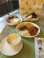 Овощи - на выбор много зеленухи, солений полно, всегда есть вкуснейший йогурт, выбор из салатиков в мини-тарелочках, турецкие закуски в тарелочках.