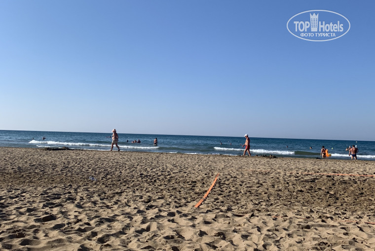 Из-за чего я выбрала этот отель, так из-за пляжа, он большой, песчаный, заход пологий, море прекрасное, лежаков много, всем хватит.