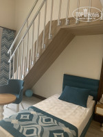 В 9:00 мы подошли на ресепшен и русскоговорящая девушка, предложила нам вместо номера стандарт, семейный двухуровневый номер. Он располагается на 0 этаже. Номер чистый, постельное белье свежее, в данном номере имеется два телевизора, на первом этаже две односпальные кровати, а на втором этаже двуспальная кровать. Есть сейф, но он платный (2 евро в день).