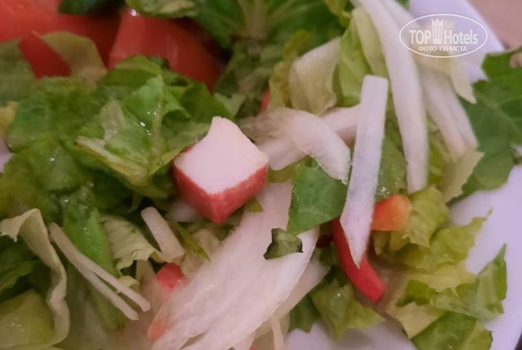 И самое интересное, салат из морепродуктов!!!!!!это листья салата, помидор и КРАБОВЫЕ палочки(морепродукты). Фото ниже. ПОЗОРИЩЕ.и вообще салаты это отдельная история. Три тазика одних и тех же ингредиентов с добавлением где-то сыра, где-то орехов и т.д.