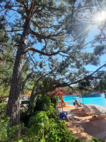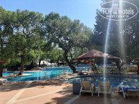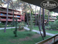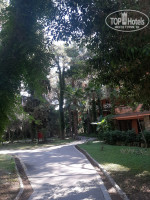 - территория огромная, утопает в пальмах, банановых "деревьях", фикусах и соснах. Отель представляет из себя трех/четырехэтажные домики, раскиданные по всей территории и соединенные множеством дорожек. Три бассейна (если не перепутала, но мы естественно в них не купались), куча баров, большой ресторан с посадкой внутри и на улице. Очень много зон для отдыха. Амфитеатр с программой. В баре у ресепшена на улице каждый вечер живая музыка. Турок пел на всех языках.