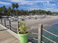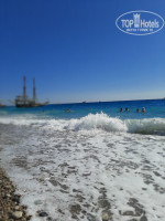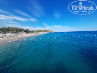 Пляж чистейший, песочно-галечный. Глубина быстро набирается, поэтому два ряда ограждений сделано. Первый для детей, за ним уже не встать. Это от берега метра 3-4. Море чистое. Из 7 дней 6 были волны, не огромные, взрослые кайфовали, маленькие дети, конечно, боялись. Лежаков достаточно для октября. Здесь же души, бар, пирс, питьевая вода.