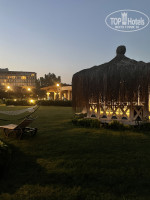 Территория отеля большая, зеленная, ухоженная, но при этом компактная, все находится близко. Много фотозон для фотографий. Вечером все красиво подсвечивается.