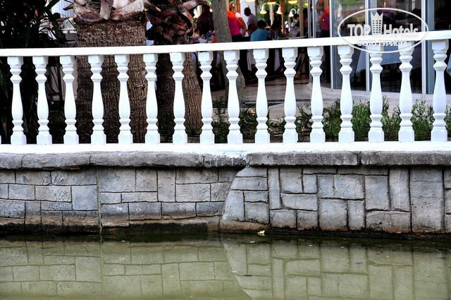 3. ТЕРРИТОРИЯ огромная, однако почти все занято спальными корпусами, поэтому особо погулять негде. Зеленых насаждений довольно много в спальной зоне, но все это неухожено, кусты торчат во все стороны, деревья перекошены, с подпорками из досок, на пальмах куча засохших веток, газоны сухие, вытоптанные, дорожки покрыты старой, перекошенной плиткой, а местами – просто бетоном. Опадающие с деревьев листья выметают редко. Кругом окурки, бумажки и прочий мусор. Сбоку от главного корпуса отеля типа водопад, который включают на пару часов в день, но реально это зеленая, затхлая лужа, покрытая тиной, источающая болотный запах, где вечерами регулярно звучат легушачьи серенады. Кстати всякого рода зловония будут преследовать вас на всей территории отеля. Ощущение что находишься на территории городской свалки.