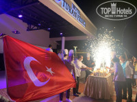 Отдыхали в этом отеле в начале октября 21 года, муж, я и сын 3 лет. Отель выбрали друзья, они поехали раньше, мы присоединились. Теперь я буду выбирать место отдыха сама). Туран Принц представлялся, судя по фото в интернете, красивейшим, зелёным и уютным местом для идеального отдыха. Первое впечатление после приезда, а это было аж около 22:00 - что за каменные джунгли и куда мы попали?. Мы туристы не искушённые, поэтому я честно была несколько в шоке от того, что мне не понравилось совсем. Хотя встретили с шампанским и соком для ребёнка🤪. НО, потом первое отрицательное впечатление ушло). Заселили в бунгало, это через дорогу от основного корпуса и ооочень далеко до моря, минут 15 с ребёнком. 1. Бунгало. Интернета в домиках почти нет, периодически, в течение дня можно что-то поймать, но нужно прям долго и настойчиво ловить сеть. Также интернета нет на пляже, только в главном ресторане и около него. Плюс бунгало все же был: мало людей, но тишины не дождались, кафе под нашим балконом включало очень громко одну мелодию, Которая под конец уже изрядно бесила. Еще ваш сон потревожит «призыв» к молитве около 6 утра (чрезвычайно громко в колонки) и в районе 16 часов, не знаю слышно ли это в главном корпусе. Номера маленькие, если повезёт (нам нет), достанется бонусом большой балкон, внутри все есть, кондеем не пользовались, из русских каналов - 1, Россия 24 и ТНТ. Полотенца и белье меняли каждый день, не понравилось что ломились в наглую, когда ребёнок был на дневном сне. Мыли откровенно плохо, на балконе не убирали от слова совсем, в номере тупо проходили тряпкой в зоне видимости (под кровать никто не залезал), хотя на тумбочке наводили порядок и расставляли наши туалетные принадлежности. Лестницы на второй этаж убийственные, хорошо что сын сам уже мог аккуратно подниматься по ней и спускаться. Между всеми бунгало бассейн и шезлонги. Дорога до главного ресторана по асфальтированной дорожке и через проезжую часть, проходите ресепшн и выходите на центральную дорожку, природы почти нет, все в плитке. 2. Ресторан. Антиковидные меры соблюдены, везде висят антисептики, на входе желающим дают маски и перчатки. Столовые приборы раскладывали в индивидуальных пакетиках и на столах лежали одноразовые бумажные скатерти. Еда хорошая, всего достаточно. Изысков не ждите, раки подавали один раз и их разобрали минут за 20, т.е. если бы мы не пришли к началу ужина, то и не знали бы что они были. А так, рыба (дорадо, скумбрия), мясо (говядина, индейка, баранина, свинина, курица и даже утка), суши (гадость), зона фри, много зелени, гриль, салаты, с фруктами проблема (арбузы не вкусные, дыни тоже, персики дубовые), сладостей мооооооре, вот тут этого просто огромное количество и вкусно. В общем, в плане питания все 👍🏼. Детям мороженое с 12 давали, целый ларь счастья и так же есть бар у пляжа, типа фаст-фуда, но вкусный, крылья прям топ. Там же гёзлеме делают. Перекусить можно почти на всей территории отеля, голодными не будете точно. 3. Пляж. Песок, шезлонгов много, но в середине отдыха, пришли к 11 и не оказалось ни одного свободного, кинули полотенца на песок, а что ещё оставалось то, но этого делать нельзя. Получается надо было уходить. Никто не бегал в поисках шезлонга для нас, добывали сами. Все они под навесом, что конечно плюс. Вход в море хороший, но только справа, слева огромные камни, ноги можно переломать. 