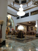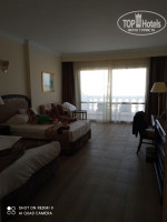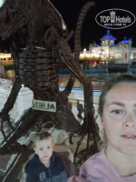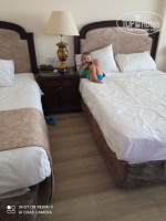 Отель большой, находится на территории бывшего парка Голливуд. На территории идут не большие работы(Где-то подкрашивают, Где-то что то чинят) но в целом это не мешало, какой-то глобальной стройки на территории отеля нет. Номер нам достался огромный 38м, с террасой. Пол не очень чистый и была пыль, которую я сама на следующий день протёрла, но убирались каждый день и меняли постельное так же. Каждый день ставили в номер воду 2 бутылки по 0,5 воды и пополняли кофе чай. В номере был чайник, холодильник, сейф. Фена не было. Питание в принципе однообразное каждый день, но всегда было мясо-курица, говядина, курица на гриле, рыба. Супы, выпечка, фрукты-финики, гранат, дыня, апельсины. В принципе мы не оставались голодными, нам всё хватало. По алкоголю, вин конечно же там ни каких нет, как я прочитала в одном из отзывов. Было пиво баночное 0,33, но его разливали на несколько стаканчиков 1 банку, мы не брали. Муж пил какой-то их виски и вроде джин. Я алкоголь не пробовала. По вечерам программа с 21.00 до 24.00 вроде, мы до конца ни разу не были. Фокусы, танец живота, танец мужчин с юбками. Шоу фонтанов, рычание динозавров. До 21.00 детей развлекает аниматор на сцене. У нас ребёнку понравилось, он каждый день танцевал на сцене.) На море автобус ходил в 8.30, 9.00, 9,30,10.00 обратно в 12.00,12.30,13.00. Вечером туда в 14.30,15.00 обратно в 16.00,16.30,17.00. В 9.00 обычно была талкучка, если раньше или позже то по свободней было. Где-то в 2-х км от отеля был другой пляж, те кто там был его хвалили, но мы лично не ходили, ребёнок маленький по жаре не хотелось с ним так далеко ходить. Нас возили на пляж Шарк оазис бич. Хороший коралловый пляж, вход с понтона. У берега мелка галька и дальше кораллы. Детям можно было по плескаться у берега, наш плескался.