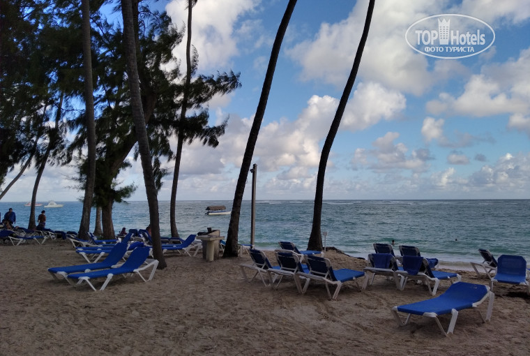 Территория шикарная. Много зелени, пальм, всё ухожено, вымощенные дорожки, огромная пляжная полоса, шезлонгов куча, всё практически в шаговой доступности. Пляжная полоса под покровом деревьев и пальм, хоть тенёк, хоть солнце - что пожелаешь. А вот океан немного расстроил. То ли сезон, то ли ветра, водоросли были постоянно, когда больше-когда меньше, не сильно они приставучие, но немного досаждают. Работники убирали их постоянно утром с прибрежной полосы, но тут вряд ли вина отеля - это природа.
