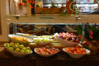 Особо много расписывать не буду здесь подробности: номер дали отличный, мне одной как королеве, питание для отдыха в не сезон на 5-, выбор блюд хороший, мясо, рыба всегда и многое другое, не малый выбор фруктов. Море продуктов не было, но за такую цену, которую я заплатила за отдых, питание хорошее, минус поставила за десерты, не всегда вкусные, ну и так бывало попадались блюда для меня безвкусные, даже посолив их.