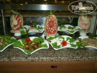 Вернулись из этого отеля 18.07. и могу точно сказать что многое что пишут не правда, хотя сколько людей столько и мнений. Територия отеля очень зелёная и красивая, но не такая уж большая. особо погулять негде. Очень приличный аквапарк, и ни кто на голову другому не съезжает, просто надо слушать парней которые разрешают спуск и спускаться только по их команде . Отличная анимация, ребята просто молодцы, всегда весёлые и заводные.Кормят тоже хорошо,и не правда что мяса нет, его полно в разных видах,салаты огромное кол-во,рыба и т. д всего не перечислишь.Фрукты:арбузы,дыни,апельсины,абрикосы,персики,нектарины,черешня,виноград зелёный,желтый и черный. Разве мало? Я это к тому что кто-то писал что фруктов мало.ЗАЖРАЛИСЬ ВЫ ЛЮДИ!А выпечка торты они просто супер! Здесь на родине хуже едите и молчите,потому-то своё ...не пахнет. Мы оплачивали номер в бунгало, а нам дали лучше с видом на море, в основном корпусе, и без всяких доплат и 20$. Кабинет доктора находится в этом же здании и мы по 10 раз на дню ходили мимо него и поверьте ни разу там больных не видели.Сама начиталась озывов и набрала таблеток от всякой всячины, всё привезли обратно, ничего не понадобилось. Персонал добрый и улыбчивый, а если где-то к немцам более отзывчивы чем к русским, так в этом мы сами виноваты,не умеем себя вести, кувыркаемся под пальмой, орём во время шоу и т.д. примеров много.Море вот не очень. Штормило 7 дней из 9, поэтому несло всякую грязь, вход галька, ноги больно, на пляже песок, правда не совсем чистый.Так что поезжайте и отдыхайте с удовольствием, не пожалеете! В доказательство добавляю фото вид из номера