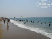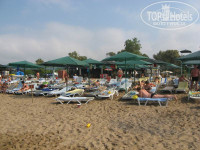 ПЛЯЖ: Около 400 метров от отеля, идти по аллейке весьма симпатичной. Берег – песок, дно – галька, влево в воде есть большие камни.. Длина – около 100 метров, совместный еще с двумя отелями (по-моему это Белинда и Коринтия), т.е. ОЧЕНЬ тесный – с 9 утра до 5-6 вечера не протолкнуться.. Шезлонги и матрасы бесплатные, полотенца получаете по карточкам в бане и меняете 3 раза в неделю. Шезлонги – треть уже поломаны.. Места хватало всегда. Всё вообщем убирают, мусора нету. Учитывая кучность наших соотечественников купался на соседних пляжах – шикарные пляжи у Парадиза, Блу Вотерса (Blue Waters), Альдианы (Club Aldiana) – дно – песочек. Неплохой бар на пляже – зачет.. Отсутствие места – незачет.