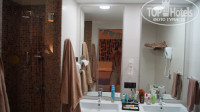 При ВЫЕЗДЕ слева от ресепшина (возле ближайшего туалета) есть очень приличные общественные душевые комнаты (М/Ж). Они просторные, приятные, там есть стопка чистых полотенец, И посде сдачи номера – можно там порезвиться.