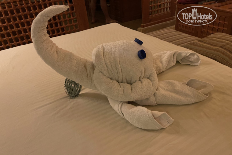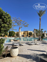 Прилетели в Хургаду рано утром. Очень быстро добрались до отеля. Сразу дали браслеты и сразу заселили в номер, не дожидаясь времени заселения. До номера багаж доставил специально обученный человек, все показал, заработал чаевые) номер очень впечатлил. Видно что внутри он поюзаный, но общий антураж и приглушённый свет сделали своё дело, а когда вышли на балкон и увидели вид из окна, вообще дар речи потеряли. Далее пошли на обед. Шведский стол удивил. Все действительно очень вкусно. Говядина навсегда останется в моем сердце)) всегда достаточно и мяса и овощей и салатов. Колбаса и сосиски правда не съедобные как и везде. Еще не удобно что вечером хотелось бы прибухнуть, а алкоголь разносят официанты. Их нужно долго ждать и звать и просить и долго несут, а ещё пиво наливают в стакан объёмом наверное 0,2 и в основном сплошная пена. Официанты очень настойчивы и очень ждут чаевые. Если хотите выпить алкоголь идите после ужина в заведение, которое находится около пляжа. Там хорошие коктейли (бесплатные) и приветливые официанты). Аниматоры показывают шоу. В рестораны, которые находятся на территории нужно записываться заранее в лобби отеля. Успели посетить итальянский- разочаровал и напитки, даже чай, платные. Пицца не съедобная совершенно, от Цезаря одно название) а вот ресторан Фино очень порадовал. Еда вкусная, плюс есть шведский стол, в итальянском не было, и напитки, включая алкоголь входят в стоимость. В общем за еду ставлю 10/10 на мой вкус. Пляж. Одно удовольствие по такое территории было до него идти. Первая линия лежаков платная, так что когда увидите, что на них лежат полотенца это ребята там работающие постарались таким образом их занять. Цену не узнавала. На пляже пару точек разливаек. Там пиво в стаканах побольше, ещё понравилась текила санрайз) ходит верблюд с Бедуином) за фотки просят 9 долларов) бассейнов на территории очень много, но сейчас в основном они для красоты. Вода очень холодная. Есть один с подогревом. В основном все там и тусуются поэтому лежаки часто заняты. Там же есть и бар где тоже наливают напитки алкогольные и без. Многие купаются, но по мне вода там тоже холодная. На территории есть детский аквапарк, горки для взрослых и доска для сёрфинга с искусственной волной. Ничего не попробовала, так как вода холодная, но людям нравится) это все дело работает по расписанию. В общем сложности часа 4 в день, так что нужно караулить) мы летали через библио глобус. Ребята их сотрудники очень приятные, всегда помогут и подскажут. Кстати пока не забыла хочу предупредить - вай Фай есть. Никак не работает. Совсем. Совершенно. Уверена что сделано для того, чтобы покупали сим карты с гигабайтами. Стоит на минуточку 20 долларов за 15 гб. Купить можно у гидов библио глобуса. В аэропорту такие симки стоят 10 баксов, так что не совершайте моих ошибок, покупайте сразу по прилету. Так вот, ребята проводят собрание, зазывают тем, что если не придёте на собрание, то страховка работать не будет)) в общем рассказывают в основном про экскурсии. Есть услуга шопинга. Автобус за вами приезжает, отвозит в Хургаду бесплатно и обратно в отель привозит. В общем этот автобус везёт вас в «центр» города. В две точки. К своим ребятам, где цены просто космические. Сначала в контору где продают масла всякие, перед этим вам надо прослушать лекции где рассказывают о их натуральнос