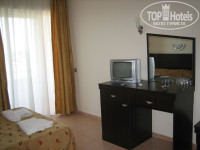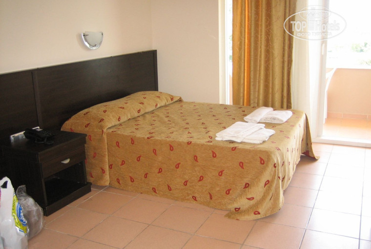 Мы жили на 4 этаже. Номера чистые, просторные. Все работает, с водой и электричеством проблем нет. Есть кондиционер, телевизор с 3 русскими каналами, нормальная душевая кабина, мебель хорошая, новая. Единственно, нет холодильника. Из всех номеров хороший вид: на горы, бассейн, апельсиновую рощу и детскую площадку (во многих отелях окна выходят на окна соседнего отеля).