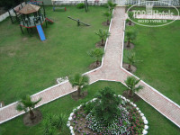Отель находится в удалении от дороги, до пляжа минут 7. Лично нам это очень понравилось, так как у многих отелей окна выходят прямо на дорогу, да и тем более прогуляться никогда не мешает) Территория не маленькая, ухоженная, зелененькая! Растут апельсинчики) Каждый день травку поливает садовник, поэтому все очень свежее) Горы совсем недалеко, очень красивый вид.