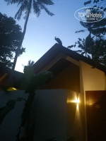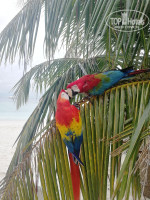 Сам остров небольшой - 300 х 200 м, территория покрыта песком: на пляже белый помельче, «в глуби» острова – пожелтее и побольше. По территории бегают ящерицы, куры, павлины, бродит одинокая цапля, а также иногда выпускают полетать попугаев – всё остальное время они сидят на жёрдочках возле пункта проката. Кстати, несмотря на то, что попугаев можно подкормить фруктами, они злющие – палец в рот не клади, могут покусать. WiFi ловит практически везде – есть возможность оперативно выложить фоточки в инстаграмм (инстаграммные войска оценят).