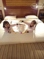 Номер боооольшоооой! Поделен на 2 зоны, дети как бы в отдельной комнате. Большой балкон, там можно сидеть отдыхать, любоваться территорией. Много места для вещей гардеробная и шкафы. Кровать удобная, для детей спальные места типа топчанов. Вполне комфортно. Минус, что номера темные, очень слабый свет, хотя ламп много. Розеток 3 шт. Шампуней, тапочек и халатов не было, экономят. Кондиционер работал на тепло. Нам это было актуально. Номер убирают каждый день, проблем с водой не было. Мы оставляли 1$ и шоколадку Аленка. Нам крутили разные фигуры из полотенец детям на радость.