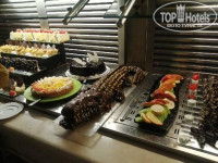 Еда. Вкусно, но не очень разнообразно. Алякарты попробовали по разу, в основном ресторане понравилось больше, так как там шире выбор. Говядина, рыба, курица, овощи на гриле были всегда. Иногда были кальмары, перепела, ягненок. Внутри два вида супов, много гарниров, подливок, свежих офощей, сладостей. Из фруктов дыни, апельсины, мандарины, айва. Детское меню это бургеры, фри и что-то из морковки и тыквы. Дети не голодали. Днем для всех ещё мороженки и вафли с блинчиками и вкусными джемами.