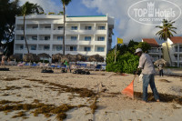 Пляж не большой,но лежаков хватало всем.Много водорослей на берегу.Чистить не спешат.Океан был грязноват пару дней.Потом всё наладилось.На территории всех пяти корпусов имеются бассейны.В 1-ом корпусе-один на крыше(обзорный),второй рядом с снек баром.Пляжные полотенца под депозит-10$.