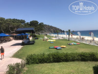 Территория не очень большая, но, ухоженная, зелёная - сосны, пальмы и другая растительность Ну, в общем, симпатичная. Особенно красивы открытые лужайки на фоне пляжа с морем.